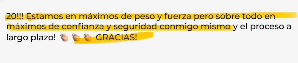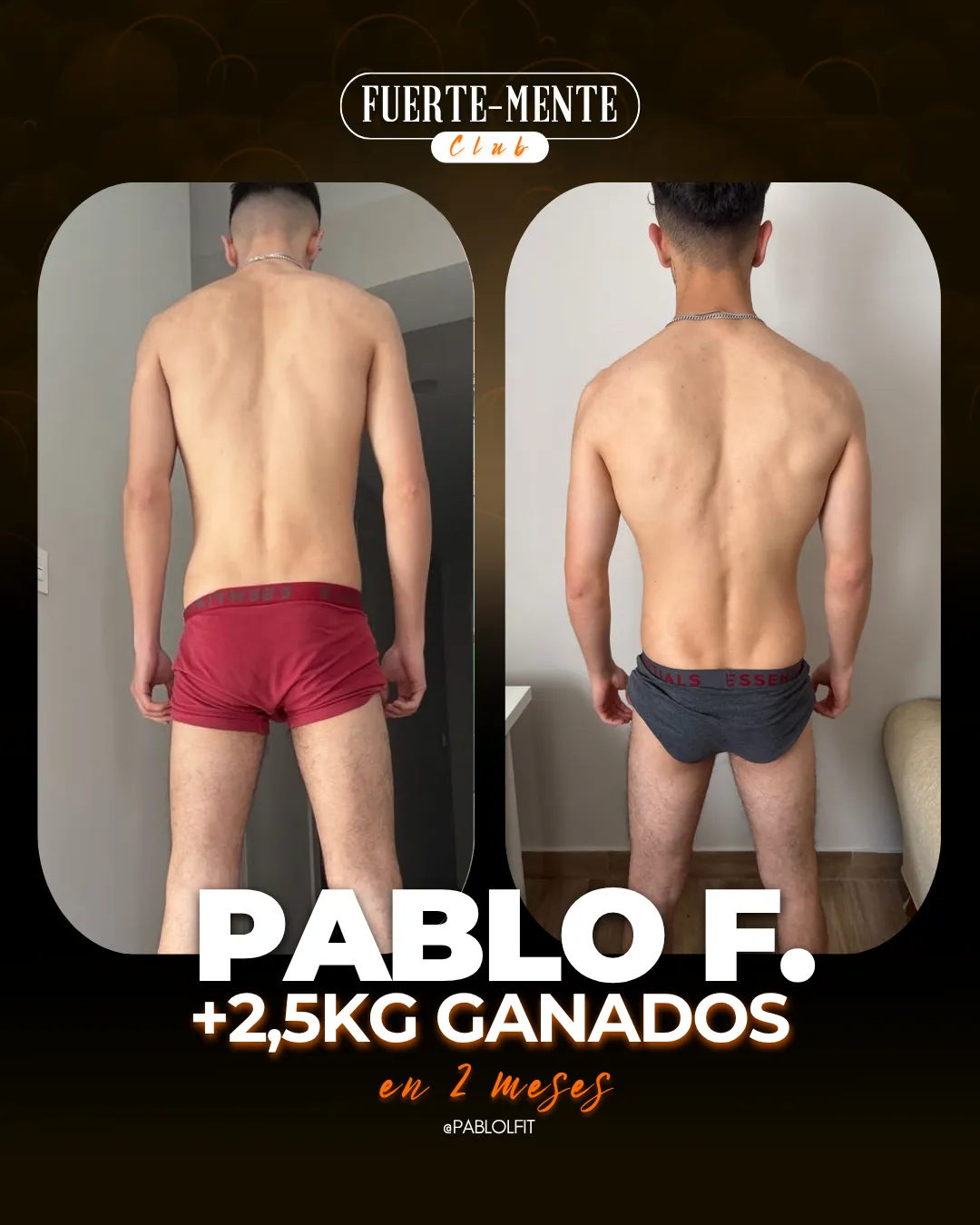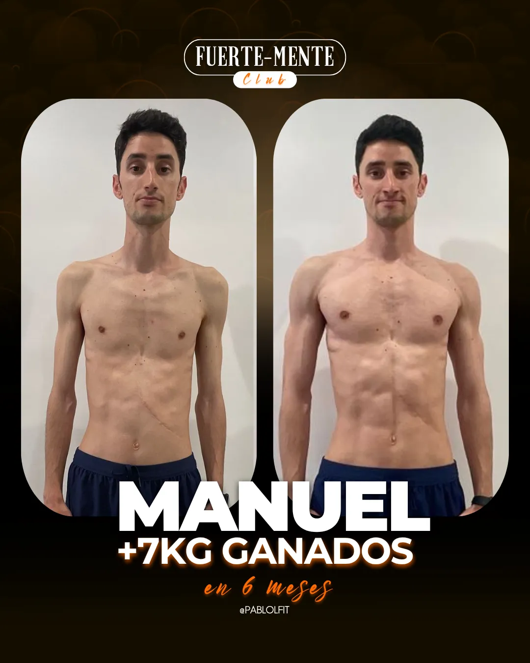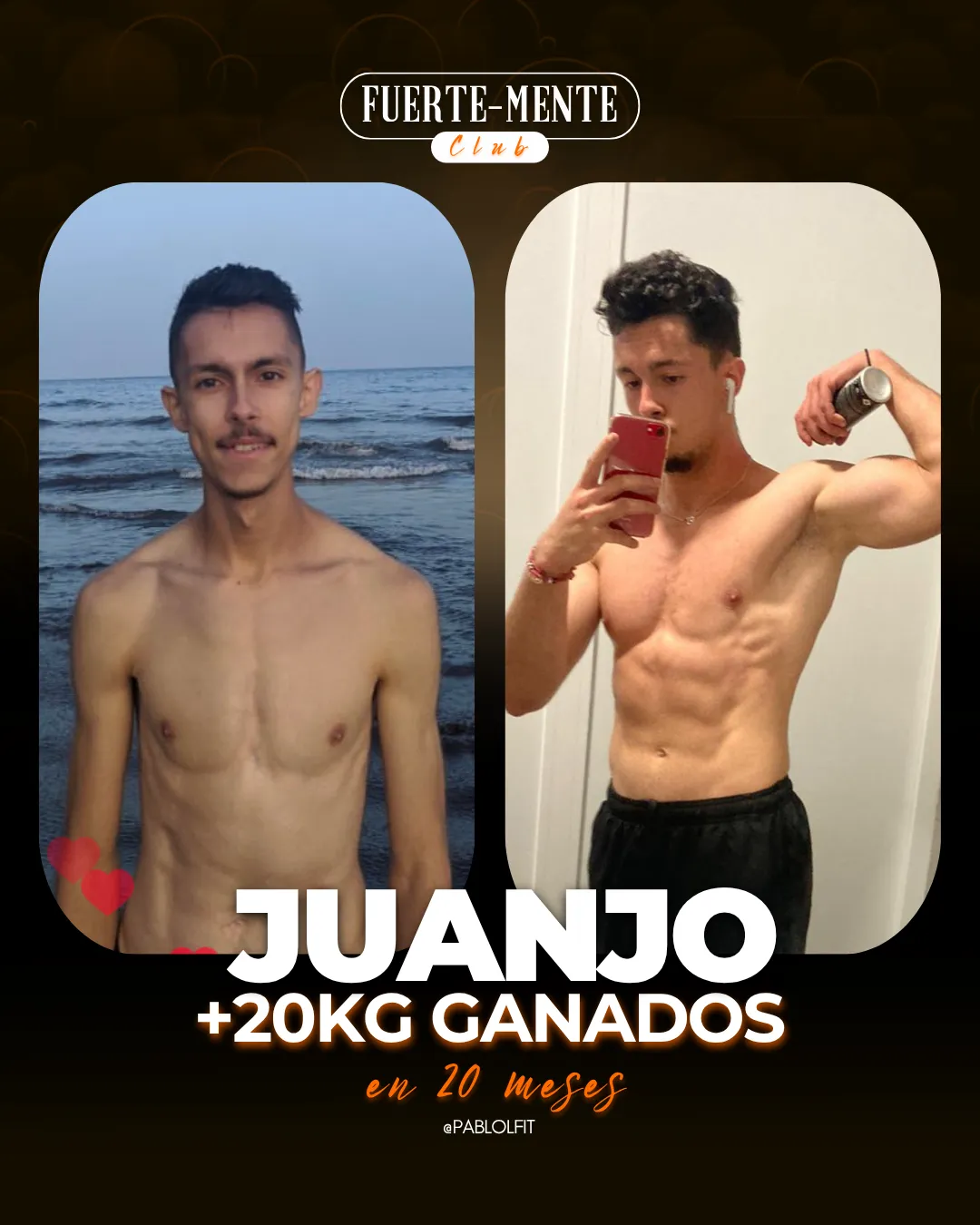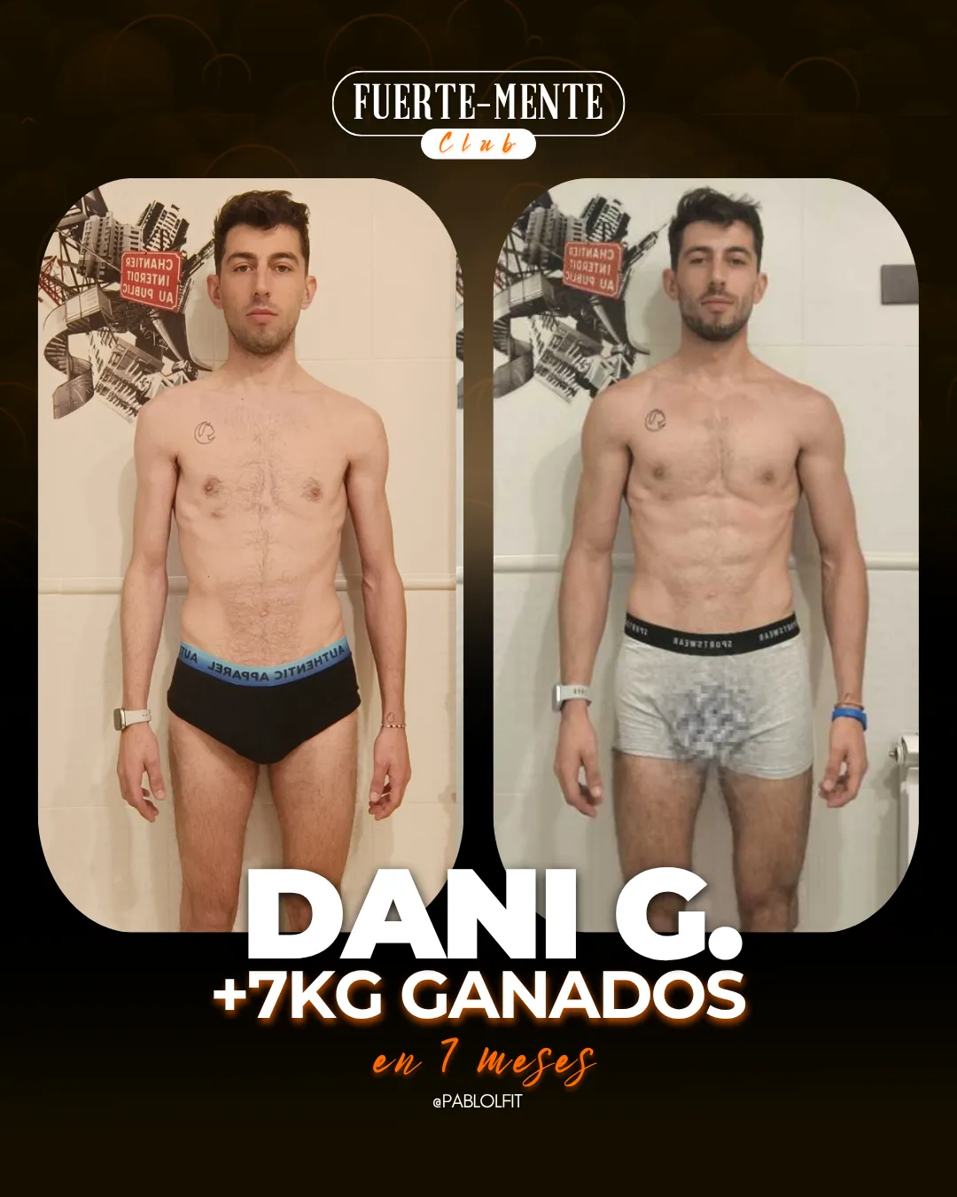Esto no se trata de subir 10kg en 3 meses y luego perderlo, sino de hacerlo sostenible en el tiempo, como Juanjo que trabajó durante 2 años con nosotros, Roberto que fue 18 meses de nuestra mano, o Dani que ya ha cumplido 1 año de acompañamiento en el Club Fuerte-Mente